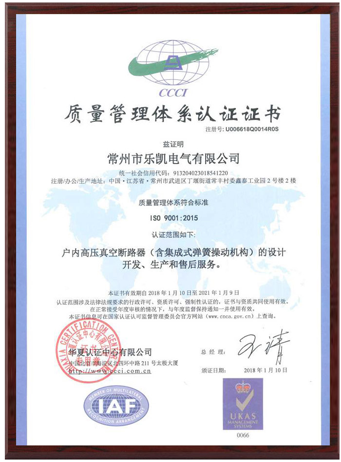 质量管理体系认证证书